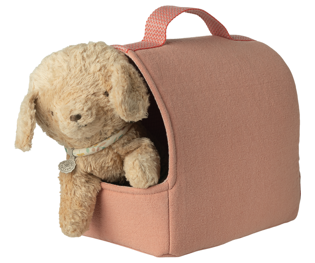 Extend the story and playscene for your soft puppy with beautiful accessories. This carrier is made to carry your friend all around very easily. It includes a pet ID so it is easy to see who the carrier belongs to. Puppy sold separately.