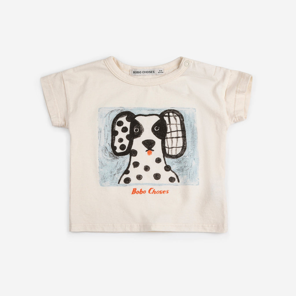 White t-shirt. Designed with short sleeves, dropped shoulder, shoulder snap fastening, loose fit and round neck. 100% Organic Cotton